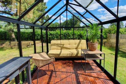 Een hoge goothoogte is natuurlijk enorm prettig, zeker voor ons Nederlanders die vaak toch best lang zijn. Loungekas Jeanne is echt een kas om in te loungen, naast het royale formaat is deze loungekas ook nog een hoog. De goothoogte is 201 cm en daardoor de nokhoogte 274 cm. Daar kunt u prettig in rondlopenen staan, ook voor uw lange neef of tante of wie dan ook lang is binnen uw familie. De goothoogte zorg tevens voor nog meer licht in de loungekas maar ook een nog veel weidser uitzicht. Ook door de extra hoogte heeft u nog meer mogelijkheden met het ophangen van verlichting, bijvoorbeeld hanglampen.